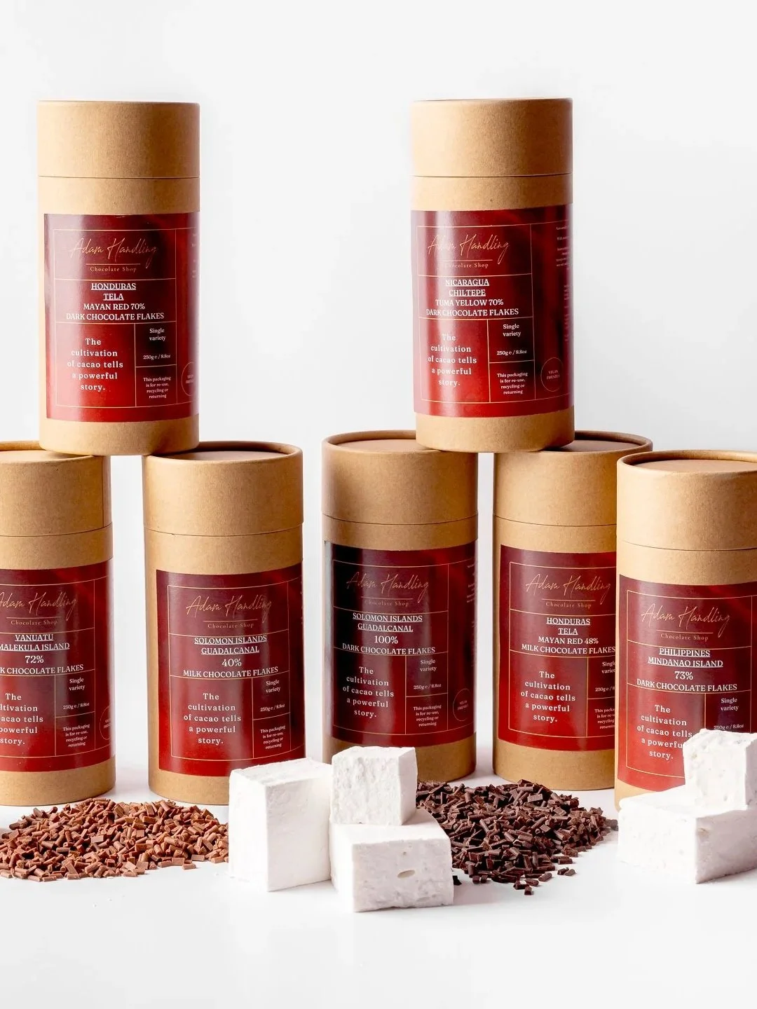 Filled with sea salt caramel, Madagascan vanilla marshmallow and 55% Congolese dark milk chocolate.